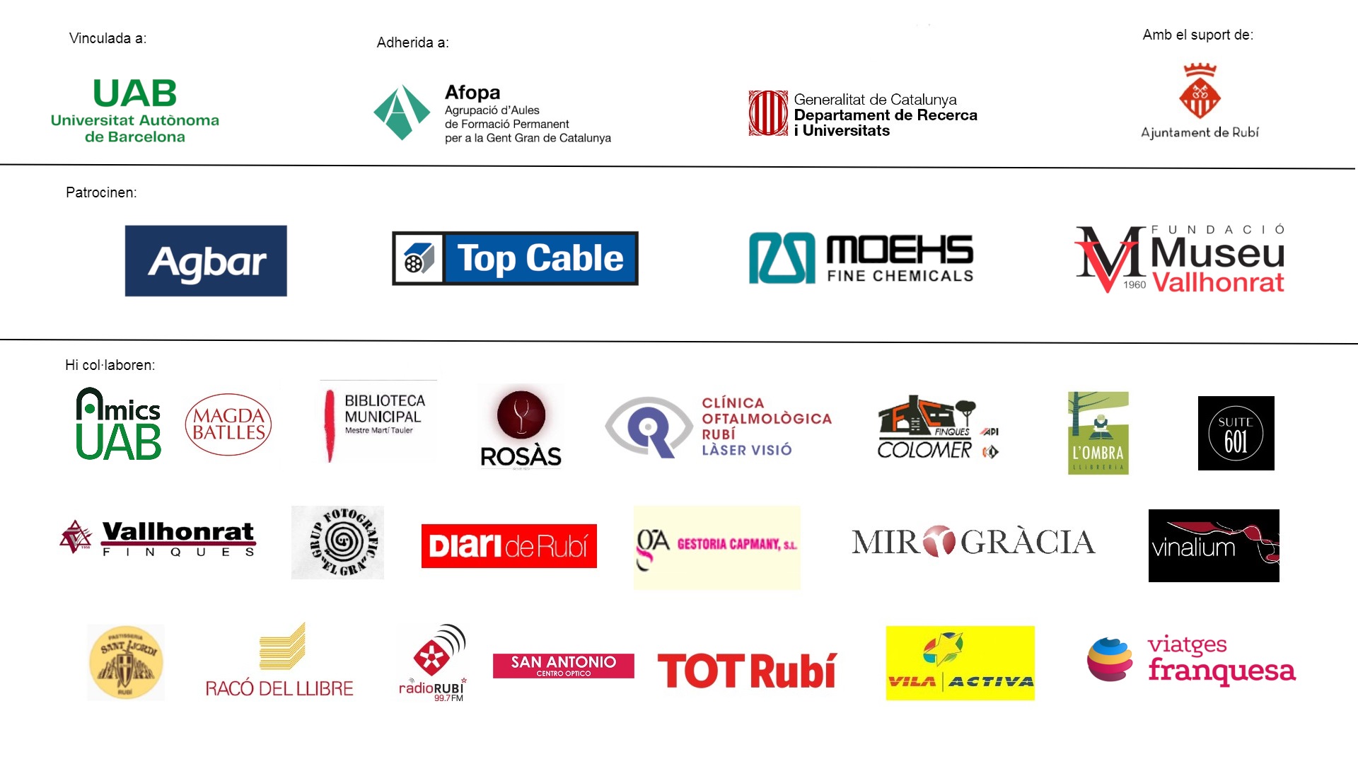 Gencat Departament d'Empresa i Coneixement Vila Activa suite 601 vinalium finques colomer clínica oftalmològica rubí biblioteca rubí Rosàs Ajuntament Rubí AFOPA grup fotografic el gra gencat universitats i recerca Top Cable Moehs Racó del llibre Pastisseria Sant Jordi Rubí museu etnogràfic vallhonrat Viatges Franquesa AmicsUAB La Caixa finques vallhonrat llibreria l'ombra AGBAR Tot Rubí AmicsUAB UAB Ràdio Rubí Gestoria Capmany Mir i Garcia Diari de Rubí